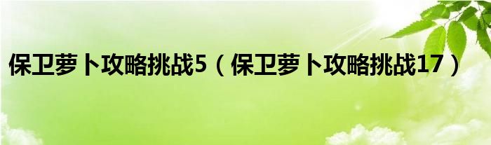 大家好,雨雨来为大家解答以上问题,保卫萝卜攻略挑战5,保卫萝卜攻略挑战17很多人还不知道,现在让我们一起来看看吧!