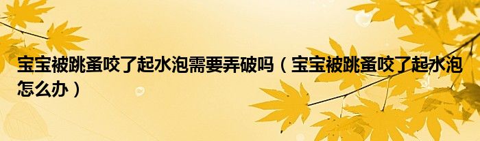 大家好,linda来为大家解答以上的问题。宝宝被跳蚤咬了起水泡需要弄破吗,宝宝被跳蚤咬了起水泡怎么办很多人还不知道,现在让我们一起来看看吧!