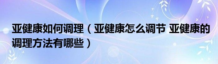 大家好,linda来为大家解答以上的问题。亚健康如何调理,亚健康怎么调节 亚健康的调理方法有哪些很多人还不知道,现在让我们一起来看看吧!