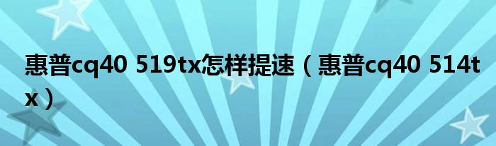 惠普cq40519tx怎样提速(惠普cq40514tx)