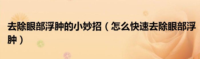 大家好,linda来为大家解答以上的问题。去除眼部浮肿的小妙招,怎么快速去除眼部浮肿很多人还不知道,现在让我们一起来看看吧!