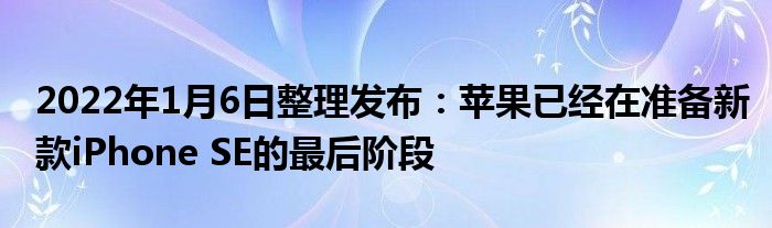据上游供应链最新消息称,苹果已经在准备新款iPhone SE的最后阶段,这款手机预计最早今年3月份发布,这可能是旗下最便宜5G手机。