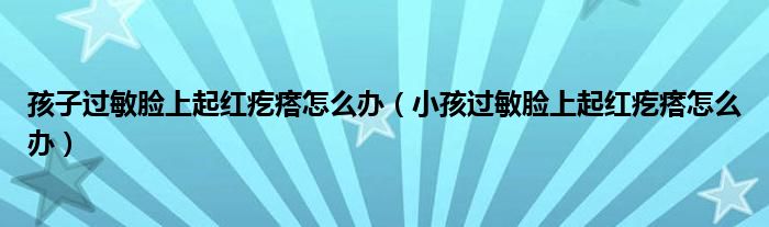 大家好,linda来为大家解答以上的问题。孩子过敏脸上起红疙瘩怎么办,小孩过敏脸上起红疙瘩怎么办很多人还不知道,现在让我们一起来看看吧!
