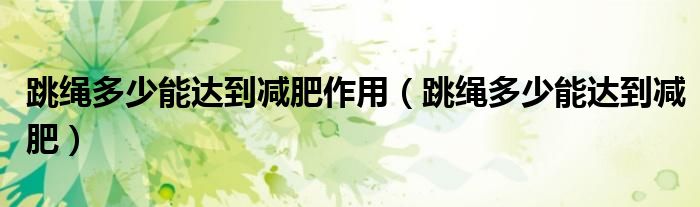 大家好,linda来为大家解答以上的问题。跳绳多少能达到减肥作用,跳绳多少能达到减肥很多人还不知道,现在让我们一起来看看吧!