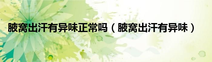 大家好,linda来为大家解答以上的问题。腋窝出汗有异味正常吗,腋窝出汗有异味很多人还不知道,现在让我们一起来看看吧!