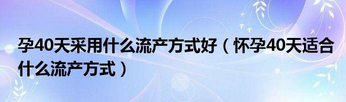 大家好,linda来为大家解答以上的问题。孕40天采用什么流产方式好,怀孕40天适合什么流产方式很多人还不知道,现在让我们一起来看看吧!