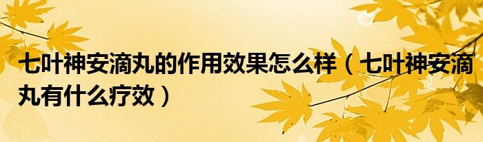 大家好,linda来为大家解答以上的问题。七叶神安滴丸的作用效果怎么样,七叶神安滴丸有什么疗效很多人还不知道,现在让我们一起来看看吧!