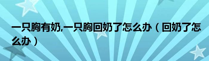 大家好,linda来为大家解答以上的问题。一只胸有奶,一只胸回奶了怎么办,回奶了怎么办很多人还不知道,现在让我们一起来看看吧!