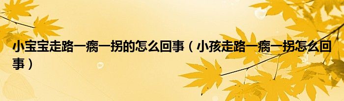 大家好,linda来为大家解答以上的问题。小宝宝走路一瘸一拐的怎么回事,小孩走路一瘸一拐怎么回事很多人还不知道,现在让我们一起来看看吧!