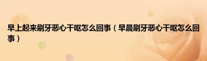 大家好,linda来为大家解答以上的问题。早上起来刷牙恶心干呕怎么回事,早晨刷牙恶心干呕怎么回事很多人还不知道,现在让我们一起来看看吧!