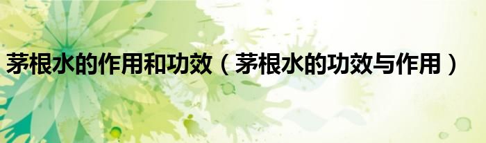 大家好,linda来为大家解答以上的问题。茅根水的作用和功效,茅根水的功效与作用很多人还不知道,现在让我们一起来看看吧!