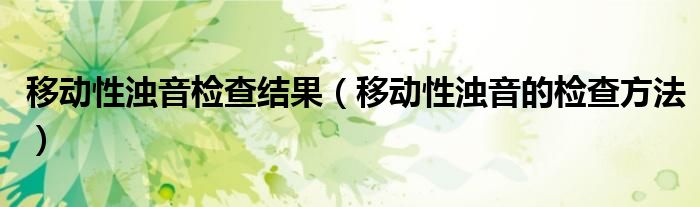 大家好,linda来为大家解答以上的问题。移动性浊音检查结果,移动性浊音的检查方法很多人还不知道,现在让我们一起来看看吧!