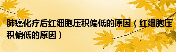 大家好,linda来为大家解答以上的问题。肺癌化疗后红细胞压积偏低的原因,红细胞压积偏低的原因很多人还不知道,现在让我们一起来看看吧!
