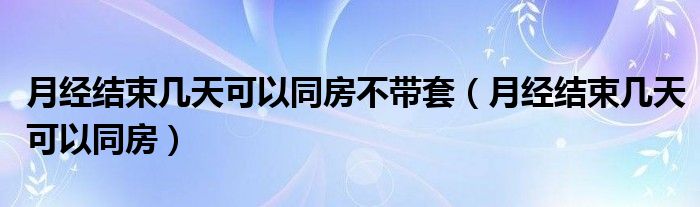 大家好,linda来为大家解答以上的问题。月经结束几天可以同房不带套,月经结束几天可以同房很多人还不知道,现在让我们一起来看看吧!