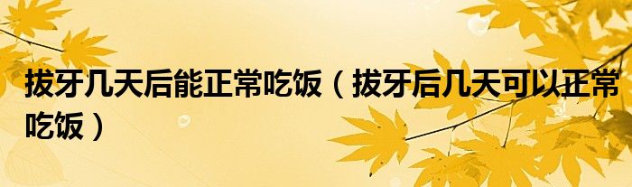 1、如果拔牙没有伤害,4-5天就可以正常吃饭了。