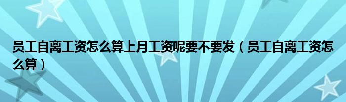 大家好,小晋来为大家解答以下问题,关于员工自离工资怎么算上月工资呢要不要发,员工自离工资怎么算很多人还不知道,今天让我们一起来看看吧!