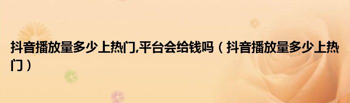 抖音播放量多少上热门,平台会给钱吗(抖音播放量多少上热门)
