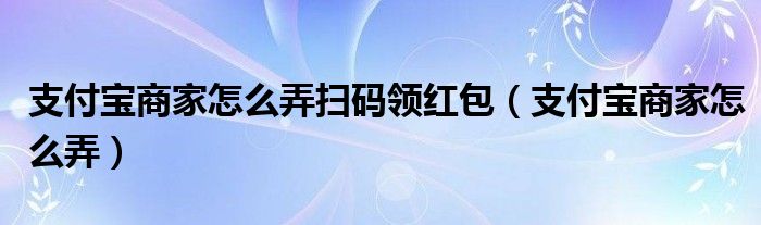 支付宝商家怎么弄扫码领红包(支付宝商家怎么弄)
