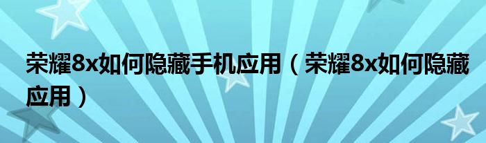 荣耀8x如何隐藏手机应用(荣耀8x如何隐藏应用)