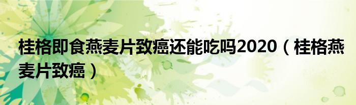 大家好,小晋来为大家解答以下问题,关于桂格即食燕麦片致癌还能吃吗2020,桂格燕麦片致癌很多人还不知道,今天让我们一起来看看吧!