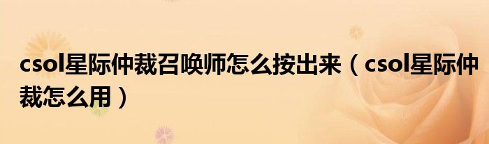 csol星际仲裁召唤师怎么按出来(csol星际仲裁怎么用)