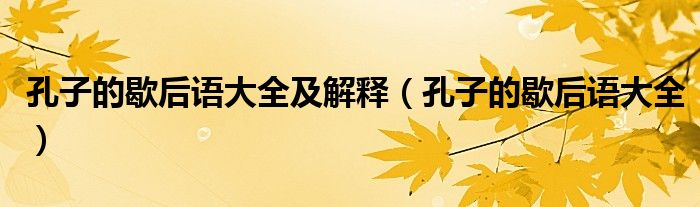 孔子的歇后语大全及解释(孔子的歇后语大全)