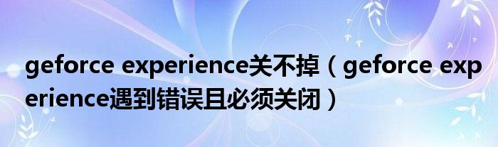geforce experience关不掉,geforce experience遇到错误且必须关闭很多人还不知道,乐乐来为大家解答以上问题,现在让我们一起来看看吧!