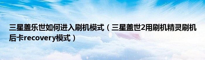 三星盖世2用刷机精灵刷机后卡recovery模式:三星盖世2手机用刷机精灵刷机后卡recovery模式,可以下砸官方固件包,进行线刷。刷机方法: 1、在给手机刷机之前,请确保手机电池电量大于50%,避免电量不足。另外为了防止刷机中意外断电,建议使用笔记本电脑进行操作。 2、确保电脑已经安装好三星盖世2的驱动文件,或者直接去三星官网下载Kies(该文件包含驱动)安装后建议连上手机测试,看电脑是否已经完全识别。 3、三星盖世2刷机需要下载相对应的工具和ROM。对应的工具是Odin v3.07,而刷机ROM则看个人需求(通常固件大小都大于2GB左右)。 4、三星盖世2刷机需要进入一个特殊的模式,而这个模式可以自行进入,通过简单的按键组合【电源键】+【HOME键】+【音量-键】即可(需要同时按住不放),直到出现警告画面后,按【音量+键】继续。5、三星盖世2的刷机模式界面顶部还提供了机型信息和系统状态,同时还提醒在系统更新中千万不要拔掉USB数据线。 6、三星盖世2的刷机ROM包分为两种。第一种就是ROM包为单个文件,集成了所有的内容,通常该文件的大小超过2GB。这种情况下只需要在PDA处选择文件即可 (因文件较大,选择文件后刷机工具如果出现卡顿或者无响应属于正常现象,稍等即可),同时左边的窗口也会对文件进行验证,成功后点击刷入即可。 第二种就是ROM包为多个文件,每个文件都对应相关的内容,通常会有3-5个小文件(因ROM包而异同)。这种情况下需要在对应的项目内选择相关文件,一般PDA处选择的文件最大,CSC的文件次大,此处一定要认真选择相对应的文件,否则一旦选错,机器将可能严重损坏。 7、一切准备就绪后便可以连上数据线进行刷机了。在点击“Start”开始刷机之前建议再次检查文件配置是否有出错,一旦刷机开始将无法撤销操作。 8、刷机过程中屏幕会出现蓝色的进度条,同时刷机软件也有提示相关进度内容,最耗费时间的内容则是SYSTEM部分,另外刷机中请尽量不去操作电脑和手机。 9、三星盖世2刷机升级中,整个过程大概需要7-10分钟,视电脑情况而定。 10、刷机完毕后,系统自动重启,并且进入系统恢复模式进行二次加载。这个过程比较短,大概持续时间为1分钟左右,尽量保持数据线不要断开。 11、再次重启后回到刷机工具Odin3上,此时看到软件已经提示PASS通过了。看到这样的画面就代表刷机已经成功,此时可以将数据线拔出。 12、需要注意的是,开机后会停留在三星的画面上一段时间,大概是1-2分钟,并非是死机,无需担心。