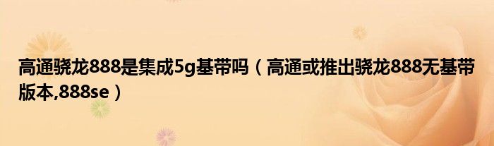 大家好,小常来为大家解答以上问题。高通骁龙888是集成5g基带吗,高通或推出骁龙888无基带版本,888se很多人还不知道,现在让我们一起来看看吧!