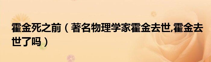 大家好,小常来为大家解答以上问题。霍金死之前,著名物理学家霍金去世,霍金去世了吗很多人还不知道,现在让我们一起来看看吧!