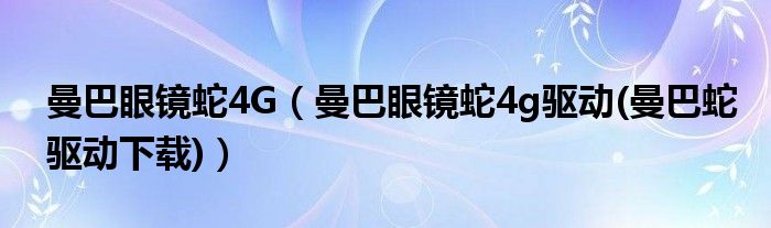 曼巴眼镜蛇4G(曼巴眼镜蛇4g驱动(曼巴蛇驱动下载))