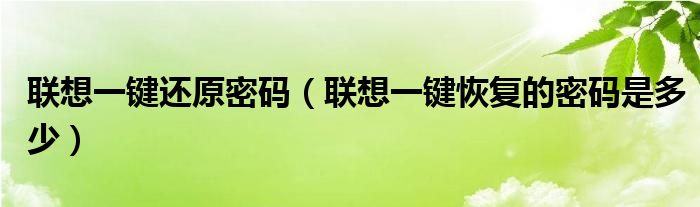 5,联想笔记本恢复系统密码是多少 :一般联想电脑的一键恢复功能是不设置密码的,但是,如果想自己备份数据,那个有部分机型是需要密码的,而且每一个型号和每一个型号的备份密码不同,如果恢复系统也要密码,那就应该是人为设置的,最好问问是谁设置的就知道了。