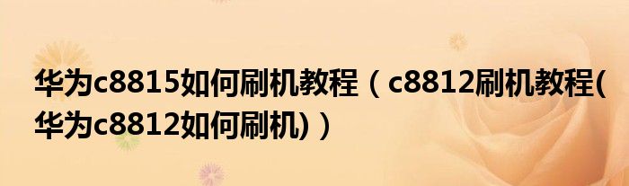 大家好,小常来为大家解答以上问题。华为c8815如何刷机教程,c8812刷机教程(华为c8812如何刷机)很多人还不知道,现在让我们一起来看看吧!