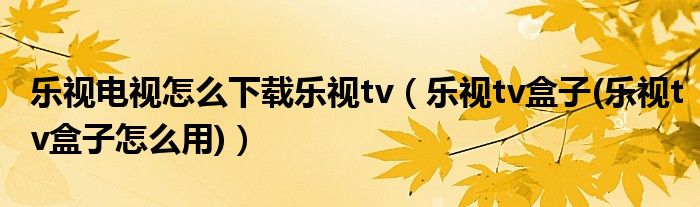 大家好,小常来为大家解答以上问题。乐视电视怎么下载乐视tv,乐视tv盒子(乐视tv盒子怎么用)很多人还不知道,现在让我们一起来看看吧!