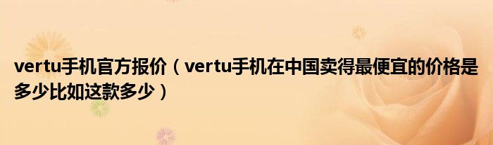 2,vertu手机买多少钱:vertu最便宜是2万吧~~贵的就没有底了啊~