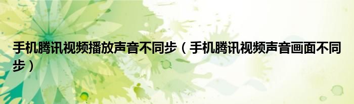 手机腾讯视频播放声音不同步(手机腾讯视频声音画面不同步)