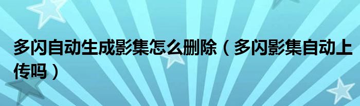 多闪自动生成影集怎么删除(多闪影集自动上传吗)