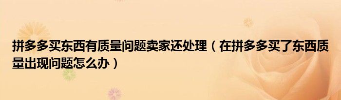 大家好,跳跳为你解答以上问题。拼多多买东西有质量问题卖家还处理,在拼多多买了东西质量出现问题怎么办这个问题很多人还不知道,现在让我们一起来看看吧!