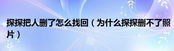 大家好,跳跳为你解答以上问题。探探把人删了怎么找回,为什么探探删不了照片这个问题很多人还不知道,现在让我们一起来看看吧!