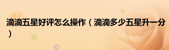 大家好,跳跳为你解答以上问题。滴滴五星好评怎么操作,滴滴多少五星升一分这个问题很多人还不知道,现在让我们一起来看看吧!