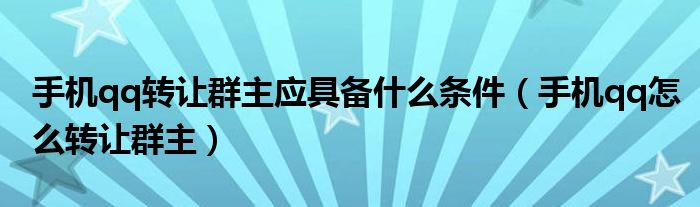 大家好,小晋来为大家解答以下问题,关于手机qq转让群主应具备什么条件,手机qq怎么转让群主很多人还不知道,今天让我们一起来看看吧!
