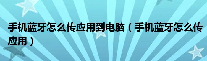 大家好,小晋来为大家解答以下问题,关于手机蓝牙怎么传应用到电脑,手机蓝牙怎么传应用很多人还不知道,今天让我们一起来看看吧!