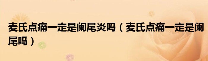 大家好,linda来为大家解答以上的问题。麦氏点痛一定是阑尾炎吗,麦氏点痛一定是阑尾吗很多人还不知道,现在让我们一起来看看吧!