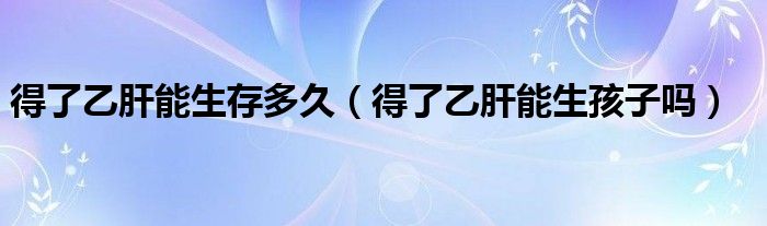 大家好,linda来为大家解答以上的问题。得了乙肝能生存多久,得了乙肝能生孩子吗很多人还不知道,现在让我们一起来看看吧!