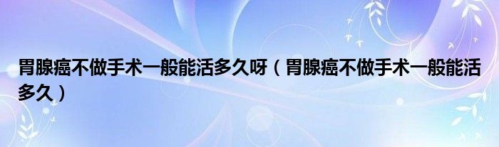 大家好,linda来为大家解答以上的问题。胃腺癌不做手术一般能活多久呀,胃腺癌不做手术一般能活多久很多人还不知道,现在让我们一起来看看吧!