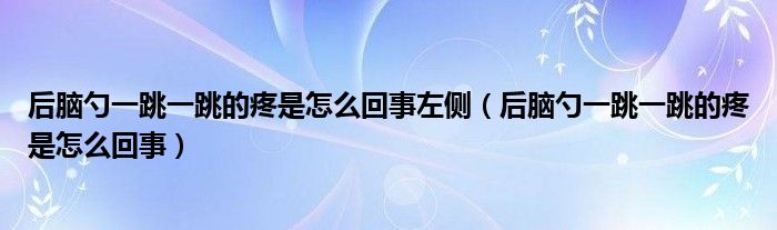 大家好,linda来为大家解答以上的问题。后脑勺一跳一跳的疼是怎么回事左侧,后脑勺一跳一跳的疼是怎么回事很多人还不知道,现在让我们一起来看看吧!