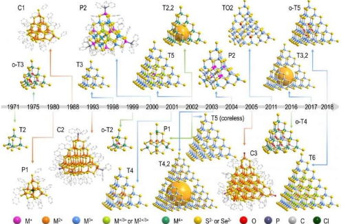 一般来说,对 MCSCs 的研究可以分为三个主题:(1)通过制造不同尺寸/组成的簇和修改簇间连接模式来扩展基于晶体 MCSC 的框架的架构,(2)晶格中 MCSCs 的离散化及其溶液可加工性,以及 (3) 探索基于 MCSC 的晶体的组成-结构-性质关系、功能和应用。在此基础上,从以下四个方面系统总结了金属硫属化物超四面体簇的发展历程: