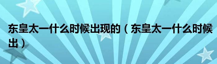 4、【东皇太乙推出时间】