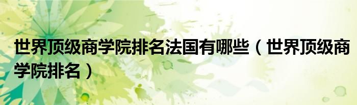 大家好,小晋来为大家解答以下问题,关于世界顶级商学院排名法国有哪些,世界顶级商学院排名很多人还不知道,今天让我们一起来看看吧!