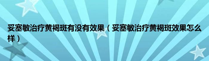 妥塞敏治疗黄褐斑有没有效果(妥塞敏治疗黄褐斑效果怎么样)